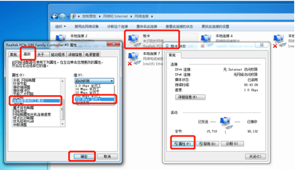 →将“高级”参数中的“连接速度和双工模式”改为“100 Mbps全双工”,点击“确定”