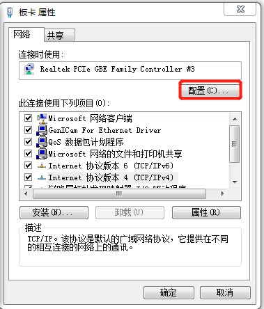 →重新打开“运动控制卡”的网络属性,点击“配置”