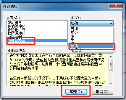→将“中断裁决率”的值修改为“极值”,点击“确定”