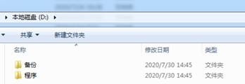 在D盘新建两个文件夹,分别叫“备份”和“程序”。