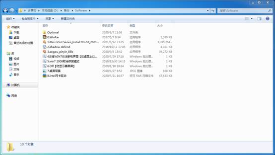 将需要安装的程序文件拷贝到“备份”文件夹下。