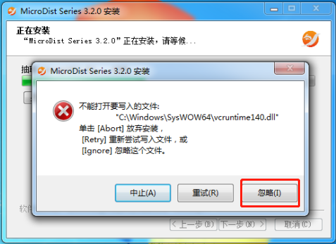 →如果出现错误提示点击“忽略”。