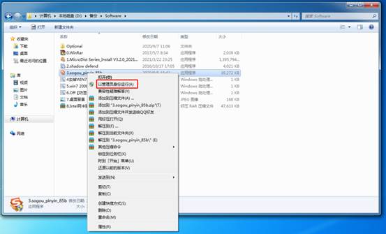 右键单击“3.sogou_pinyin_85b.exe”程序安装包。