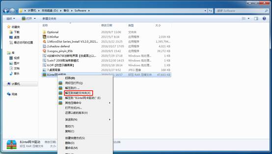 右键单击文件“8.Intel网卡驱动.rar”。