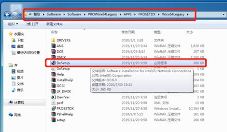 在解压后的文件夹路径下找到“DxSetup.exe”应用程序。双击打开。