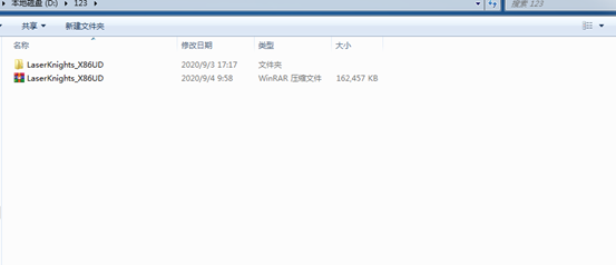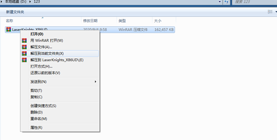 将项目使用到的最新程序压缩包解压到当前文件夹,选择LaserKnight_X86UD,右键单击进行解压。