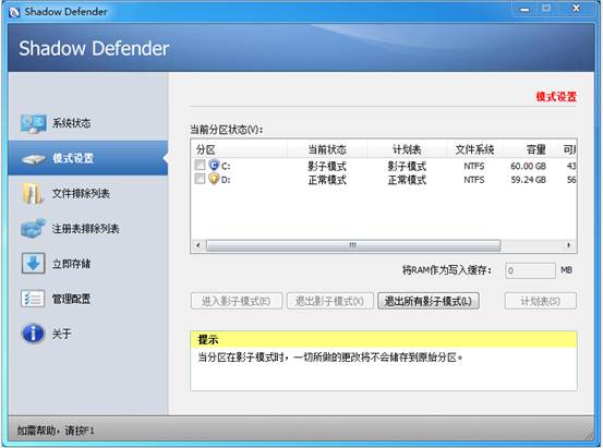→点击“重启后继续影子模式”