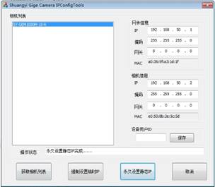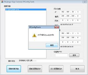 5) 填写相机IP地址(默认192.168.50.2为CCD0,192.168.51.2为CCD1,以此类推),点击强制设置临时IP,系统会显示强制设置临时IP完成……