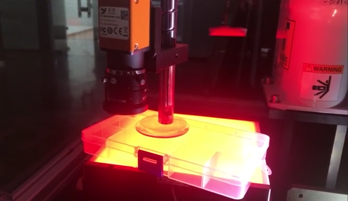 机械手的相机移动到产品位置,相机定位抓取,进行精准对位贴合。