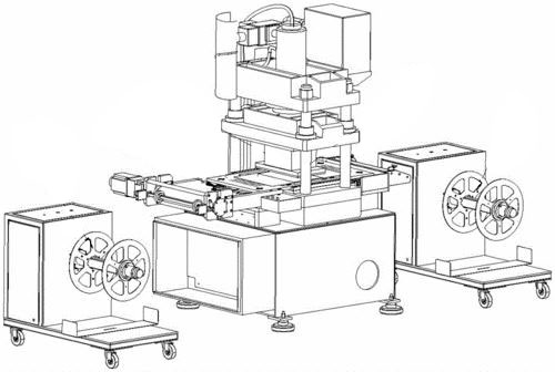 传统的自动冲压技术大多采用的物料是卷料,在料架与送料机之间增设整平机,将料整平后送至冲床处进行冲压,物料只能局限于规则的卷料而且机器设备比较庞大。但是人工排工序的繁琐以及冲压工件的不规则性使得原材料不能充分得到利用,使得加工成本提高。