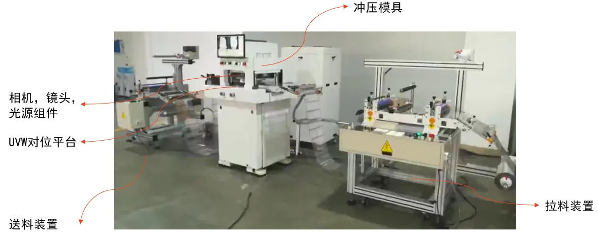 可自动识别并处理工业相机所拍摄的定位点并控制UVW或是XXYY平台实现自动化对位,可通过自动校准功能自动检测出相机的位置,相机角度,光学参数,UVW或者XXYY平台的坐标等数据。从而达到快速导入数据的自动定位图像装置。