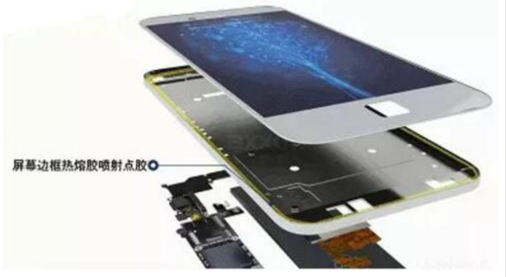 手机屏幕与边框点胶一般采用的是人工或自动化设备按照设定好的坐标系对整个边框进行点胶,要求点胶均匀好,不能又堆积,不能有漏点现象,点胶的宽度要适中。