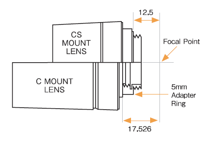 b. CS接口的相机可以搭配C接口的镜头使用,但是要使用5mm转接圈才能正常聚焦;