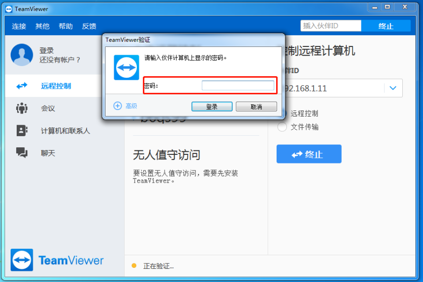 四、 在“伙伴ID”位置输入被控制工控机的IP地址
