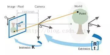 在opencv的3D重建中(opencv中文网站中:照相机定标与三维场景重建),对摄像机的内参外参有讲解: