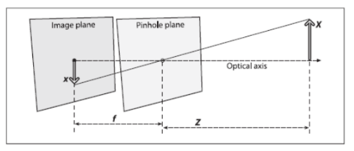 说起这个,就不得不提到针孔模型。如图3所示,针孔模型是凸透镜成像的一种简化模型。当物距足够远时(远大于两倍焦距),凸透镜成像可以看作是在焦距处的小孔成像。