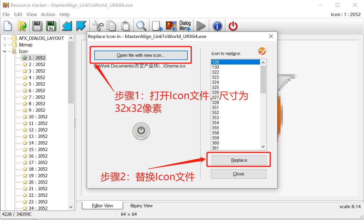四、修改关于对话框页面图标