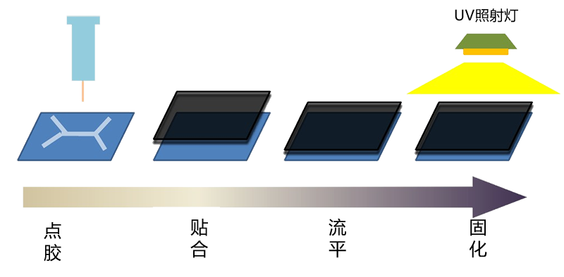优点:可以粘接曲面或不平整表面材料,对油墨厚度不敏感,易返工,成本较OCA低。