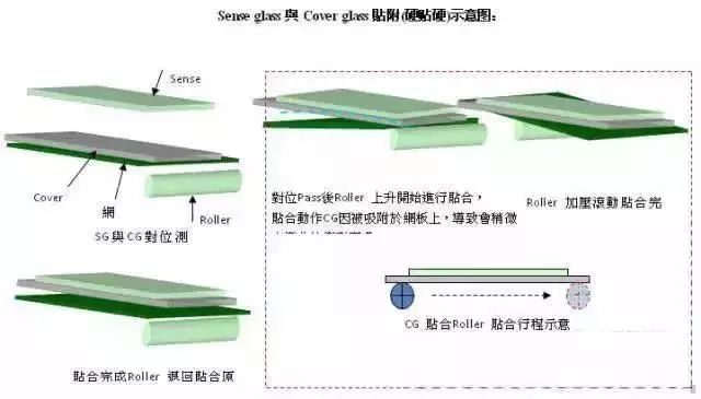 第二步将贴过OCA膜的sensor与盖板玻璃贴合在一起,俗称硬贴硬。
