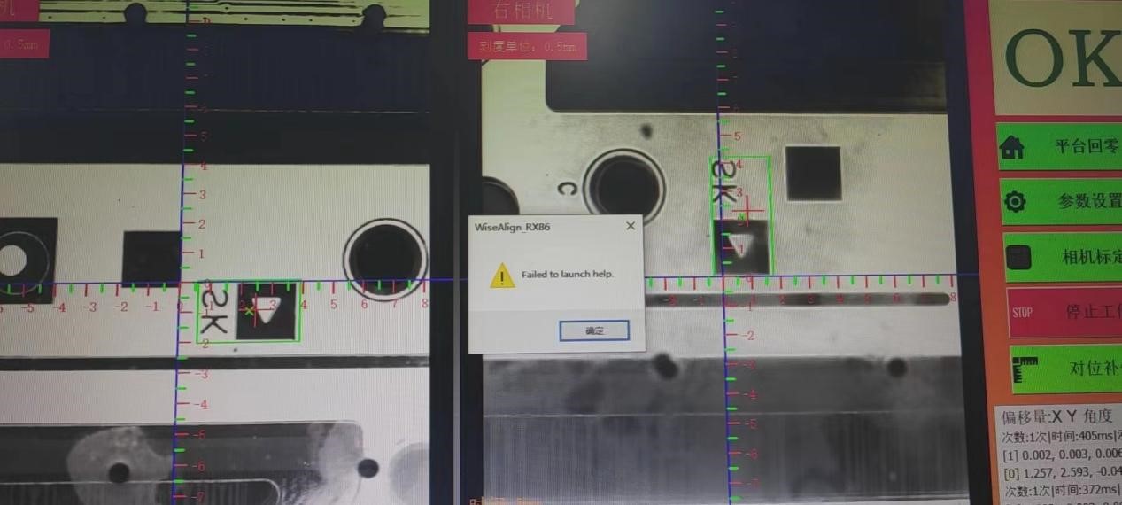 五、对位失败软件报警:“对位上料偏差过大,请重新调整上料位置!