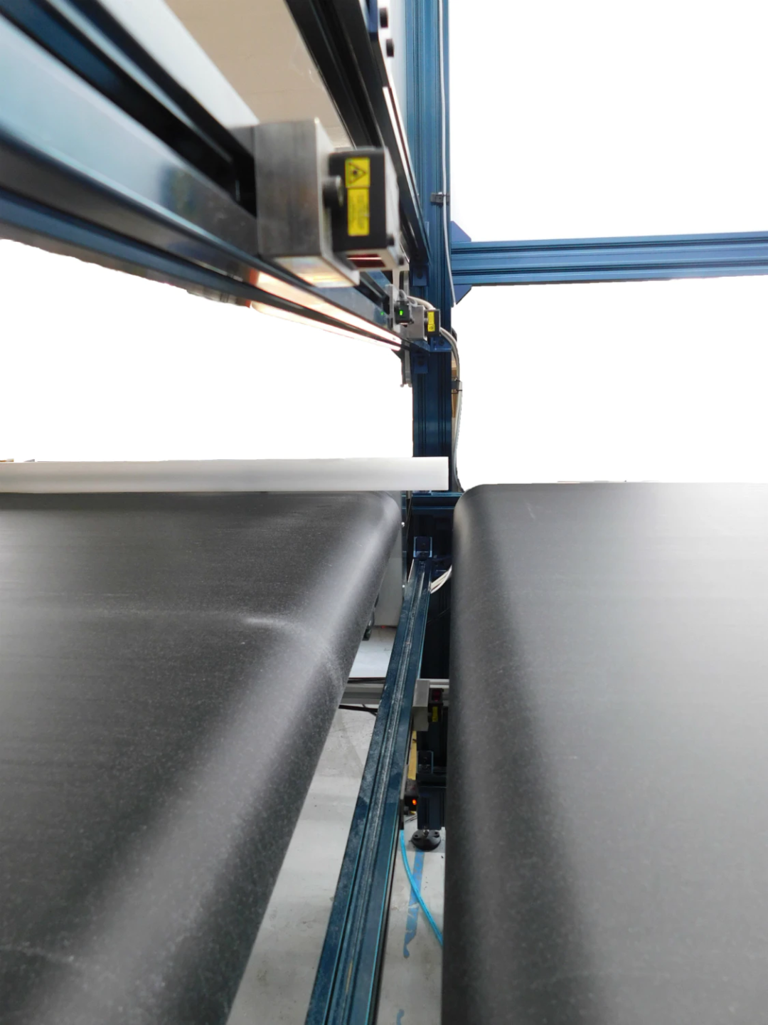 使用片状材料的客户希望采用各种尺寸的板。需要两秒钟的测量时间。生产线以每分钟120英尺的速度运行。电路板的尺寸从4 x 4英尺到4 x 8英尺,并且该系统需要检测拐角和边缘上的芯片。