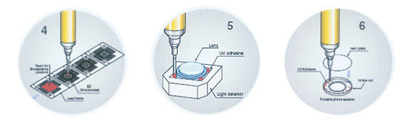自动点胶机 : 主要应用提供给使用者精准、快速及稳定的点胶质量,让点胶过程能以机械取代人力,给客户降低成本、提高质量的自动化设备。