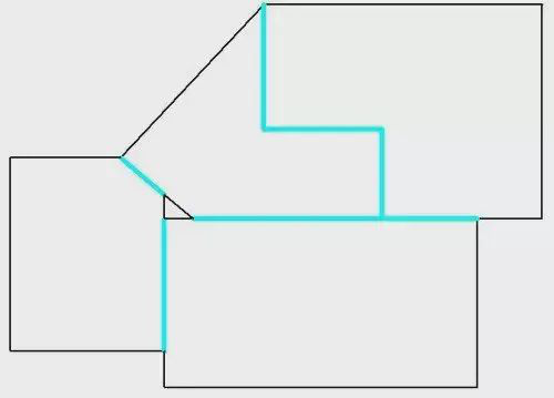 如果相邻的零件轮廓是直线,且角度相同,则可以合为一条直线,只切割一次。此即共边切割。显而易见,共边切割减少了切割长度,可显著提高加工效率。共边切割并不要求零件的外形是矩形。如下图。