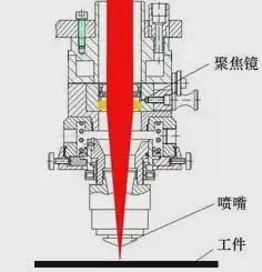 实际上,在切割过程中,喷嘴与工件之间的距离(喷嘴高度)约0.5~1.5mm,不妨看作是一个固定值,即喷嘴高度不变,所以不能通过升降切割头来调焦(否则无法完成切割加工)。
