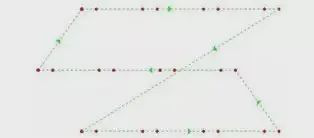 压缩空程时间,可提高机器的效率。如果将次第完成的三个动作,变为“同时”完成,可缩短空程时间:切割头从点A开始向点B移动时,即同时上升;接近点B时,同时下降。如下图所示。