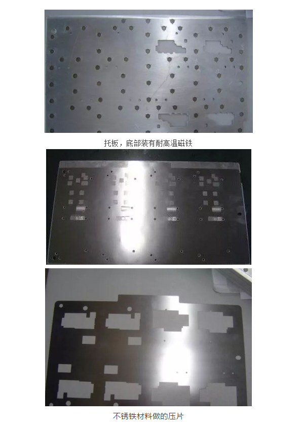 这种托板的优点是:节约成本,可反复使用;节约人员,效率高;表面平整,利于印刷;炉后取板方便、快捷。