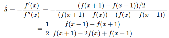这些数值极值检测方法均是先获取观测极值及其邻域信息,然后综合邻域信息在各自的模型假设下通过插值估计出极值位置。若能知道数值来自的真实分布,则直接拟合真实分布然后求极值即可,但往往我们并不知道真实的分布是什么,即使知道真实分布,有时为了快速计算,也会采取插值的方式来估计极值,毕竟偏差可接受效果足够好就可以了。应用时,为了抗噪可对数据先平滑然后求极值,具体采用何种方法可在准确和速度间权衡——所用模型与真实分布越相近自然越准确,如果实在不知道怎么选,就实践对比吧(因为我也不知道),毕竟伟大领袖教导过我们——实践是检验真理的唯一标准!