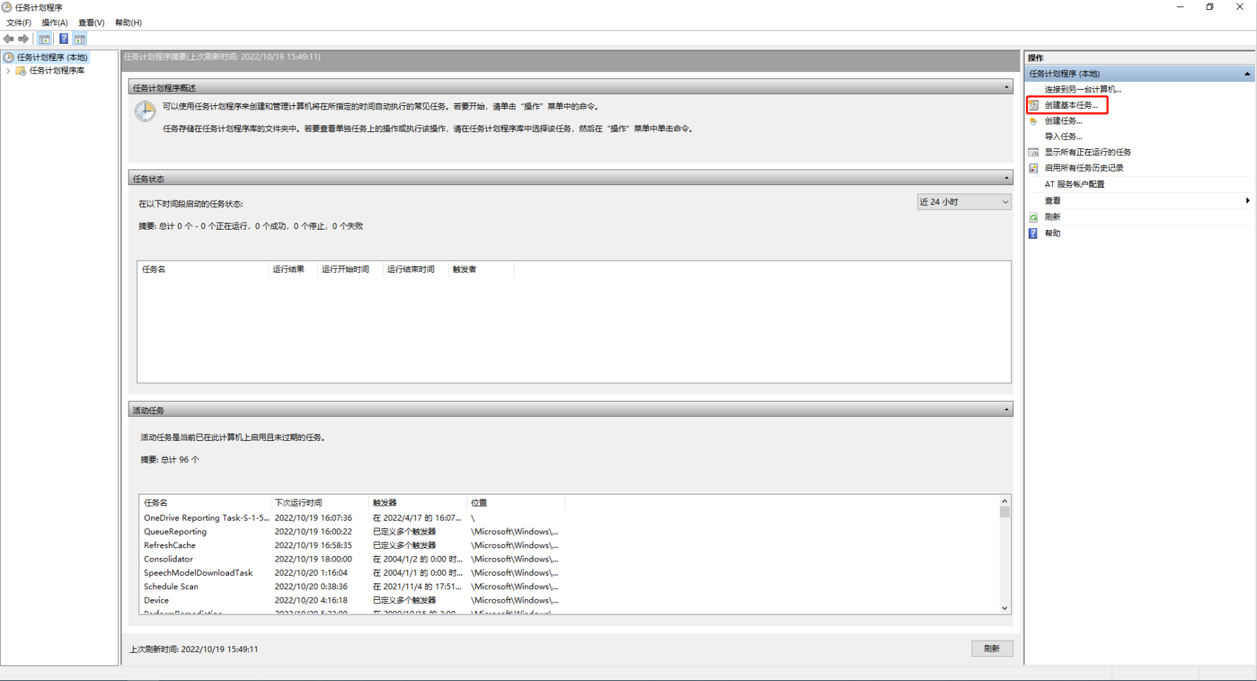 Step2:打开计划任务,选择“创建基本任务“。