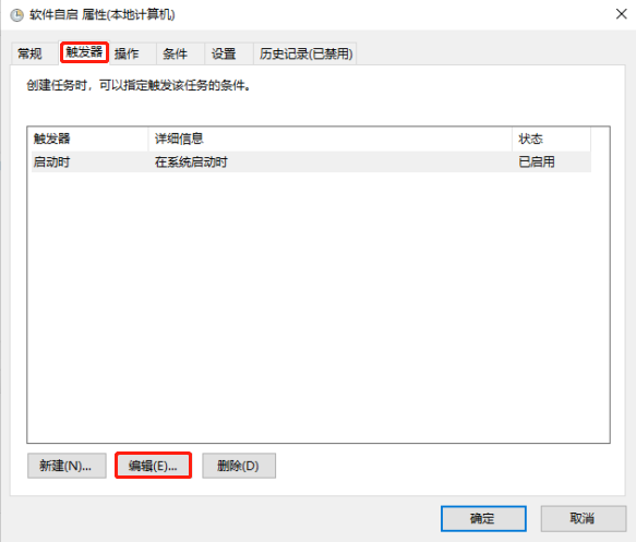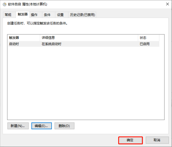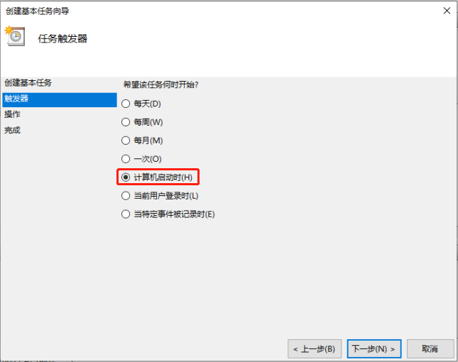 Step4:设置触发器为“计算机启动时”;