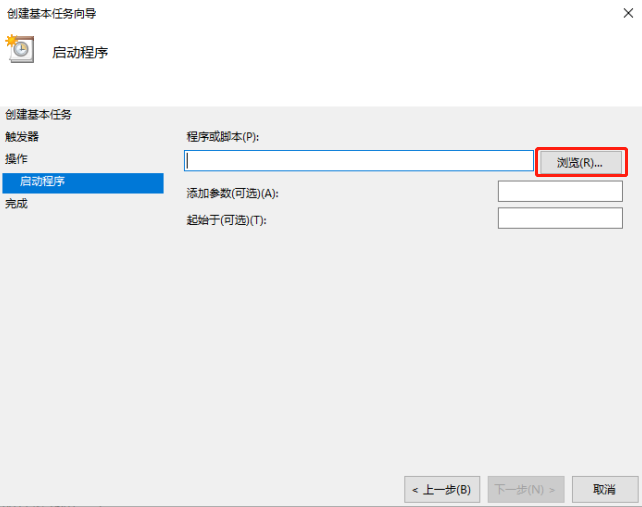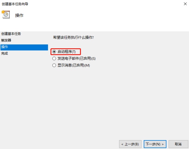 Step5:设置操作为“启动程序”;