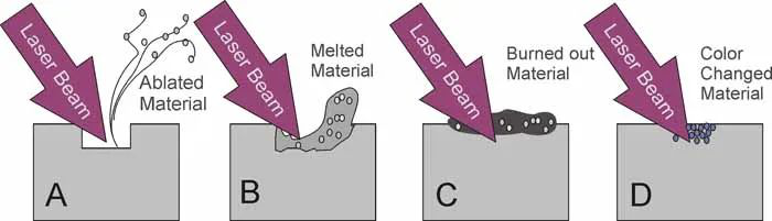 紫外激光器在基板表面留下永久不可磨灭的高分辨率标记。要了解这种现象,我们必须考虑激光束如何与材料相互作用。例如,光束可以从表面完全反射,作为来自镜子的太阳光线,或者作为穿过透明玻璃窗的太阳光线传播而不受影响。在这些情况下,表面上不会留下任何痕迹。要标记材料,必须直接在材料表面或附近吸收至少一部分激光辐射。