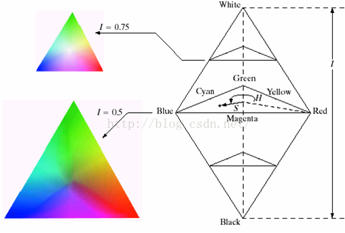 面向硬件设备的彩色模型与人的视觉感知有一定的差距且使用时不太方便,如给定一个彩色图像,人眼很难判定其中的RGB分量,这是面向视觉感知的彩色模型比较方便。这些模型即与人类颜色视觉感知比较接近,有独立与显示设备。