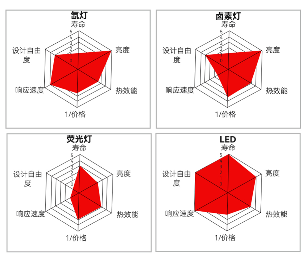 LED光源是由许多单个LED组合而成的,因而跟其他光源相比,可做成更多的形状,更容易针对用户的情况,设计光源的形状和尺寸。
