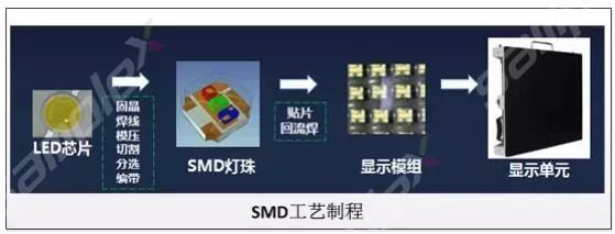 主要工艺流程是将LED发光芯片封装于支架内形成灯珠(SMD表贴件),灯珠通过焊锡再贴于PCB板。再将表贴件及PCB板放入高温烤箱内进行烧结凝固(回流焊),然后通过压焊技术对LED进行引线焊接,*后用环氧树脂对支架进行点胶封装,*终形成显示模组,模组再拼接成单元。