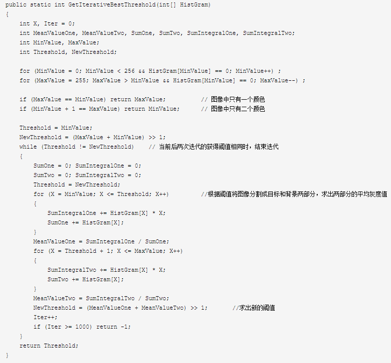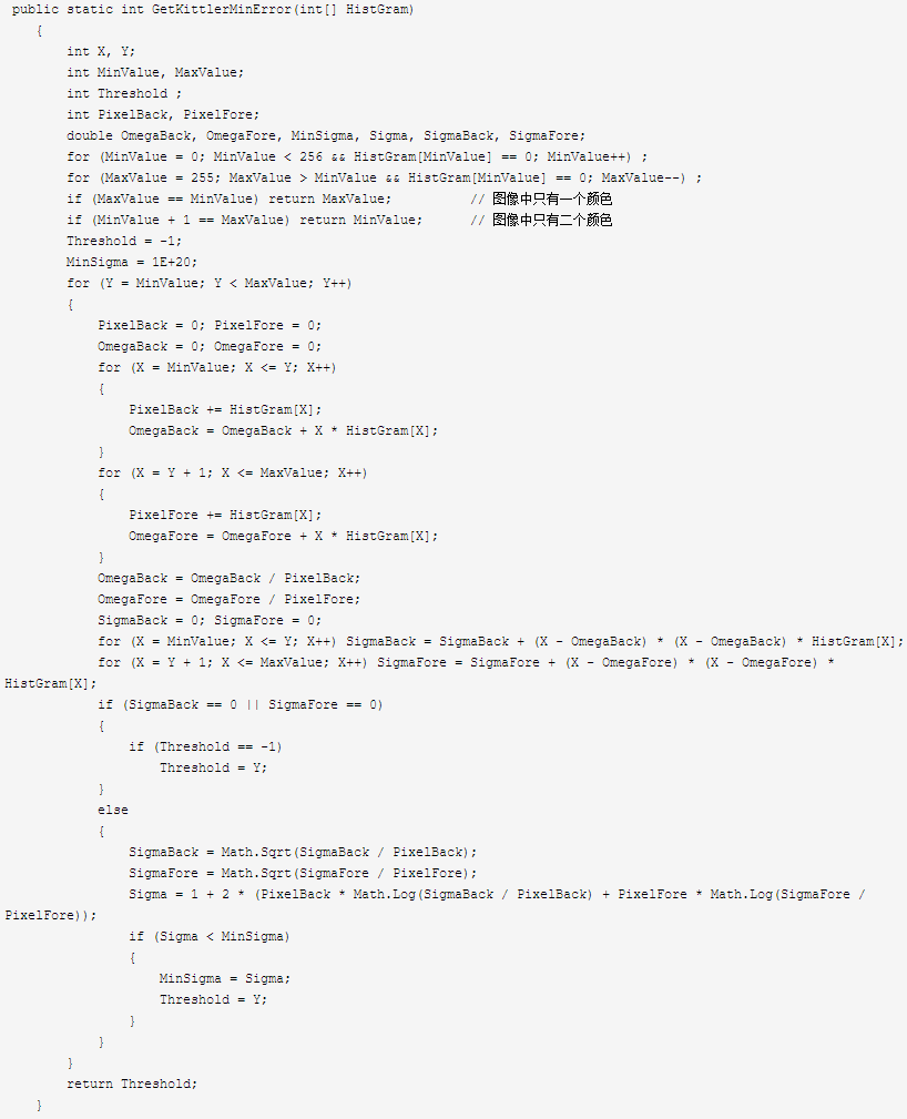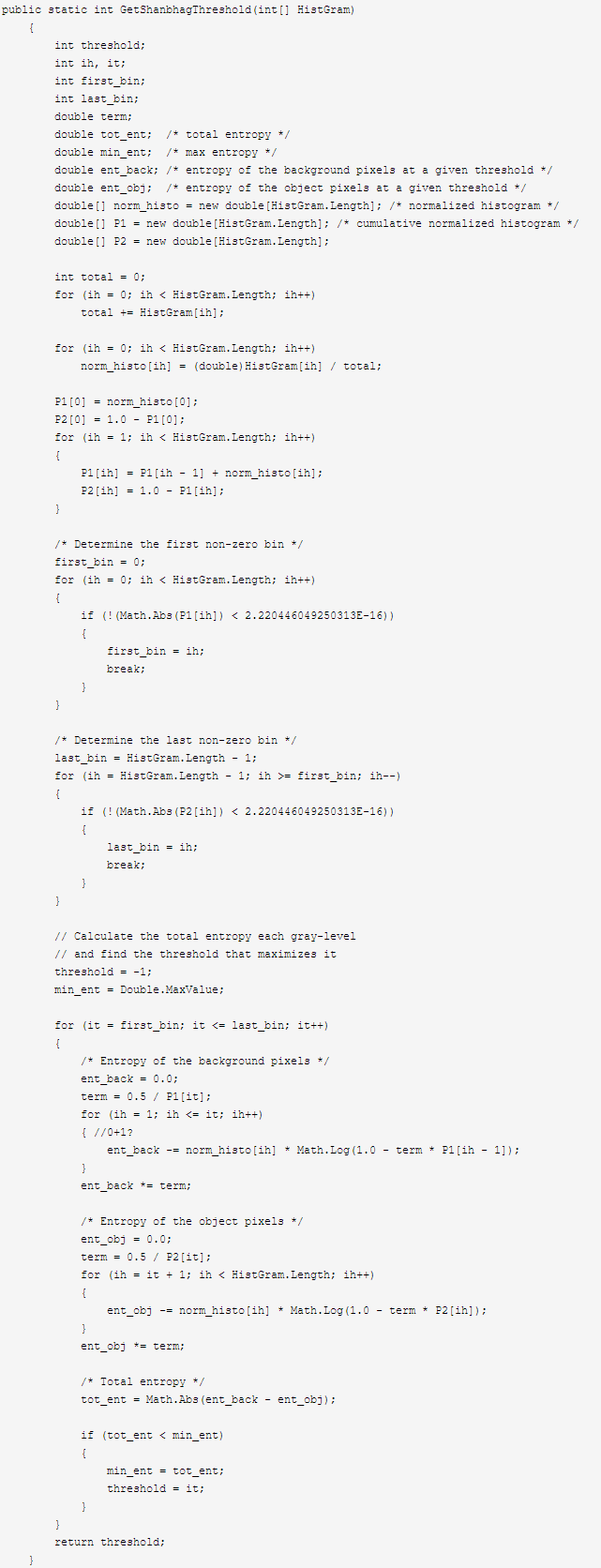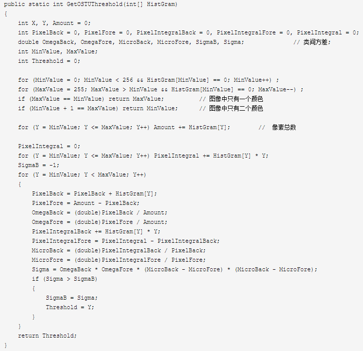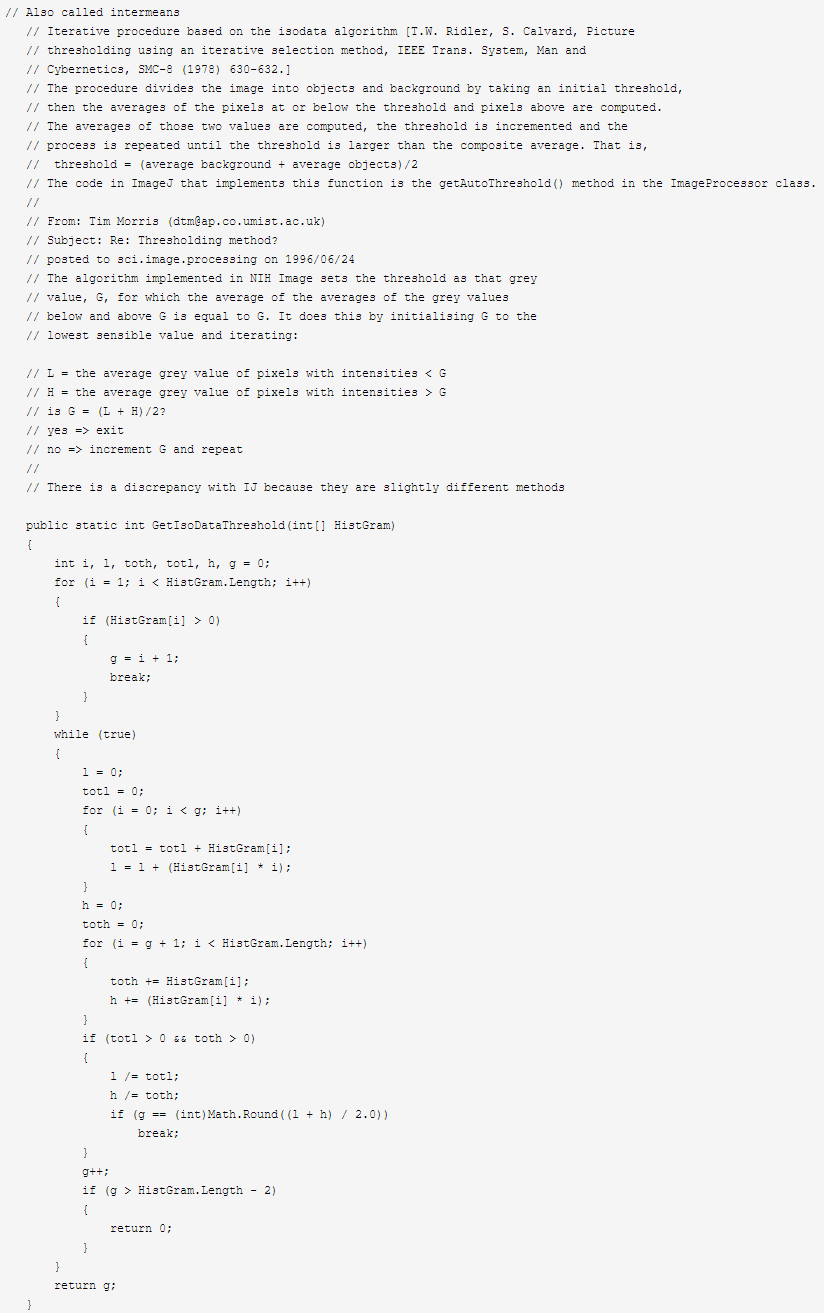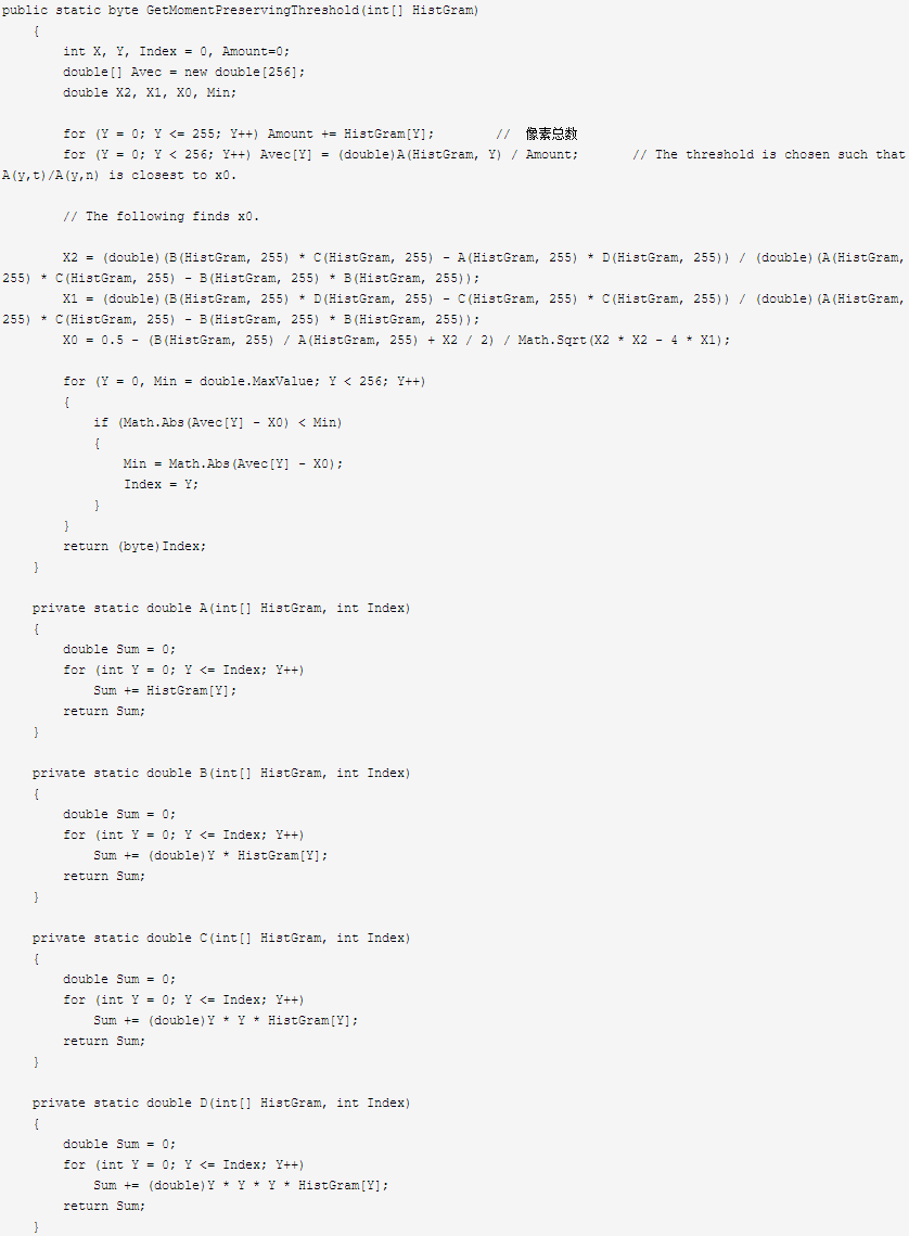 一行很多代码是摘自开源软件ImageJ的资料,读者也可以参考:http://fiji.sc/wiki/index.php/Auto_Threshold 这里获得更多的信息。