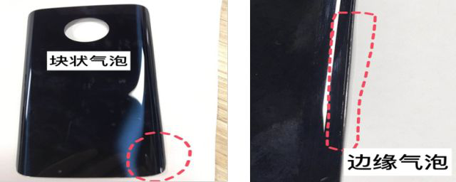 OCA涂布胶量少、曲面玻璃弧度太高、脱泡设备气压、温度、时间参数设定有误
