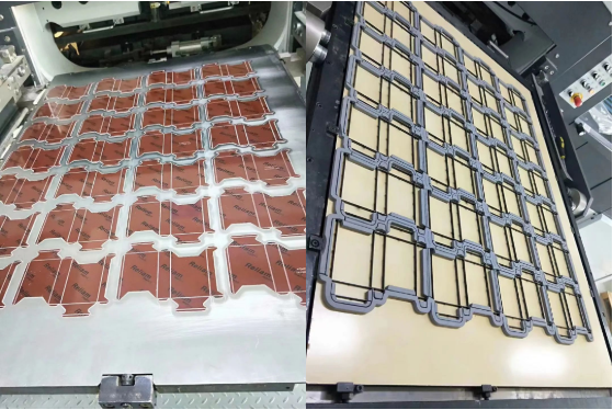 刀口周围贴的海棉弹垫过稀或硬度不够,引起回弹力不足,狭窄位无法弹出,或海棉弹垫选用不合理、粘贴不合理;其二是连接点打的太小或不合理,模切压痕时断裂。