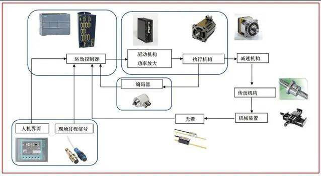 由运动控制器发出命令,给驱动机构进行功率放大,将放大后的信号传给执行机构(伺服电机),伺服电机自带编码器,能够实现半闭环控制;