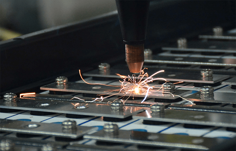 所以,这里选用的焊接方式为精密MOPA激光点焊或者螺旋线焊接,在需要焊接的部位瞬间产生高温熔合,实现无接触焊接,精准定位,高效生产优质电池。