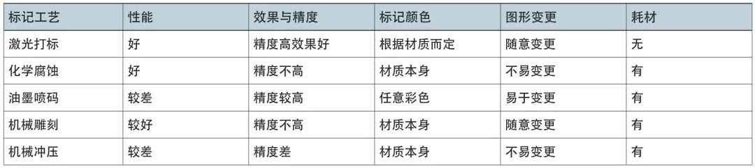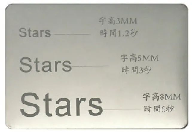 激光刻字的工作原理是以能量密度极高的激光束在计算机的控制下,照射到需要打标的产品表面,使产品表面瞬间熔化或汽化,从而在产品表面标刻出需要的文字或图案标识,如图4所示。激光刻字也叫激光打标,激光打标的特点:永久牢固、图案精美、高速高效、非接触方式、重复精度高、无须制版、没有污染、易于实现与生产线同步飞行打印等特点。标记内容可以是数字、字母、汉字、图形图象、条形码等。激光刻字是目前国际流行的最为先进的打标模式,非常适应现代化生产(高效率、快节奏)。如表1所示是几种标记工艺的对比,从中可以看出来,激光打标技术的优势是非常明显的。