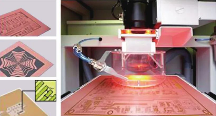 激光焊接(图3)是激光技术的一个重要领域。激光焊接的工作原理是利用高能量的激光脉冲对材料进行微小区域内的局部加热,激光辐射的能量通过热传导向材料的内部扩散,将材料熔化后形成特定熔池。它是一种新型的焊接方式,激光焊接主要针对薄壁材料、精密零件的焊接,可实现点焊、对接焊、叠焊、密封焊等,主要特点:深宽比高,焊缝宽度小,热影响区小、变形小,焊接速度快,焊缝平整、美观,焊后无需处理或只需简单处理,焊缝质量高,无气孔,可精确控制,聚焦光点小,定位精度高,易实现自动化。