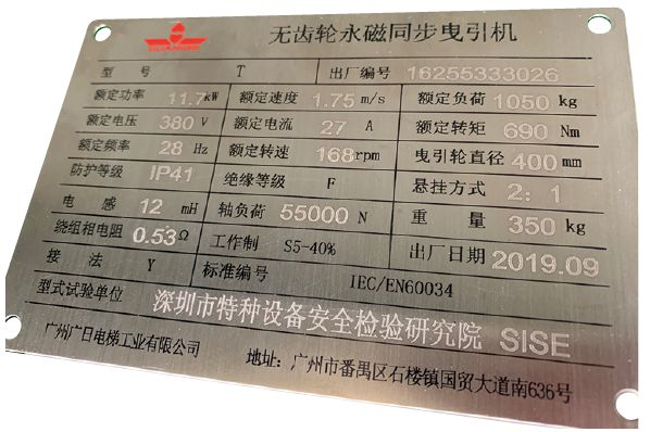 铭牌激光打标技术利用激光代替传统钢针雕刻,通过光纤激光改变不锈钢铭牌表层物质,从而刻出对应设置信息。铭牌激光打标加工速度是传统钢针雕刻的10倍以上,而且传统钢针雕刻只适用于材质比较软的材料,例如铝制铭牌等;对于不锈钢等硬度较高的材质雕刻效果较差,字迹清晰度低,肉眼难以辨识,而激光打标则解决了此工艺缺陷,在不锈钢铭牌上也能以高清晰度完成作业(图2)。铭牌激光打标设备特点概括为以下几点: