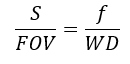 图3:镜头的小孔成像简化模型根据该简化模型,可以得出机器视觉系统图像传感器尺寸S(传感器平面某个方向上的长度)、视场FOV、工作距离WD及镜头焦距f之间的约束关系: