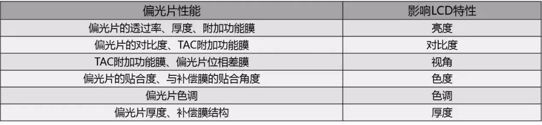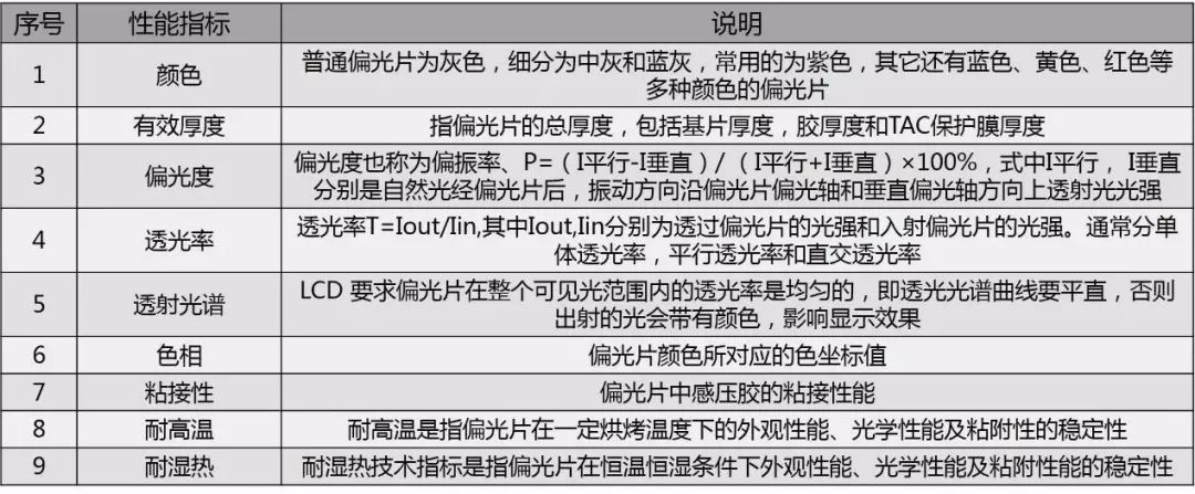表1是一份典型的偏光片性能表,下面对其各项目指标逐一进行说明: