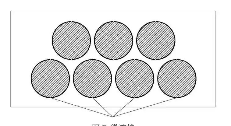 而采用微连接切割工艺,则可避免发生此类问题。具体方法为:在对图形进行激光切割编程时,有意将封闭的轮廓断开若干处,使得切割完成后零件与周围的材料粘连在一起,不致掉落,而这些断开处,称为微连接(图8)。断开的距离,约在0.2 ~1mm,需按照断开距离与板料的厚度成反比的原则来选取。