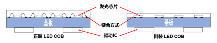 COB封装有正装COB封装与倒装COB封装。正装COB的发光角度与打线距离,从技术路线上就局限了产品的性能发展。倒装COB作为正装COB的升级产品,在正装COB超小点间距、高可靠性、面光源发光基础上进一步提升可靠性,简化生产工序、显示效果更佳、近屏体验完美、可实现真正意义上的芯片级间距,达到Micro的水平。